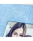 Das dargestellte Album ist ausgestattet mit Jute in der Farbe Babyblau und beinhaltet 11 Doppelseiten auf 300g Träger.